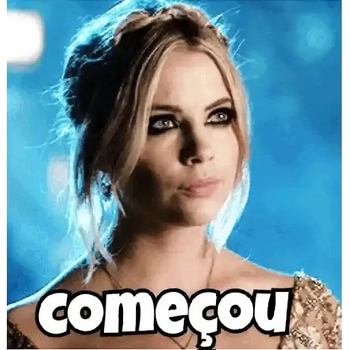 Uma mulher loira com expressão séria e o texto 'começou' em destaque na parte inferior da imagem.