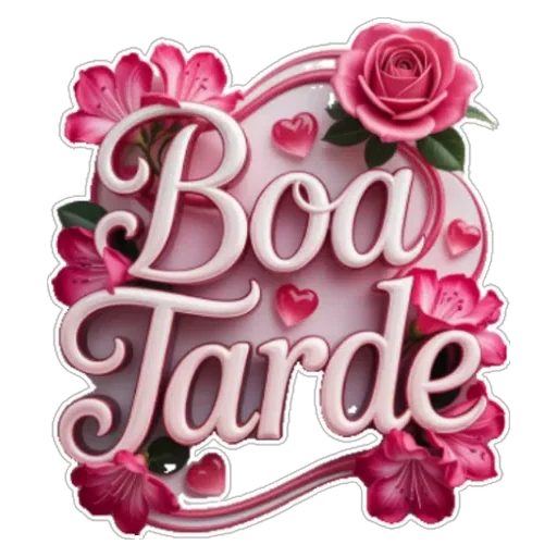 Um coração rosa com flores e folhas verdes, contendo o texto 'Boa Tarde' em letras rosadas.