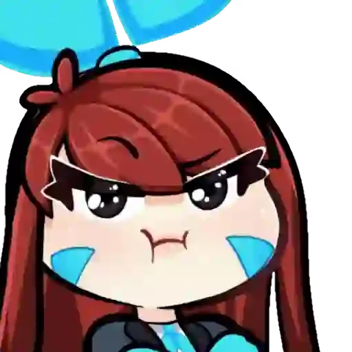Personagem de anime com expressão de raiva ou descontentamento, com bochechas azuis e olhos apertados.
