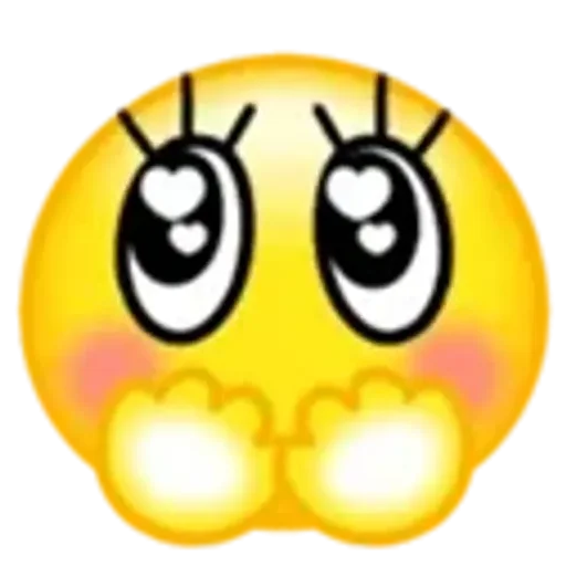 Rosto de emoji amarelo com olhos grandes e coração, bochechas rosadas e expressão fofa.