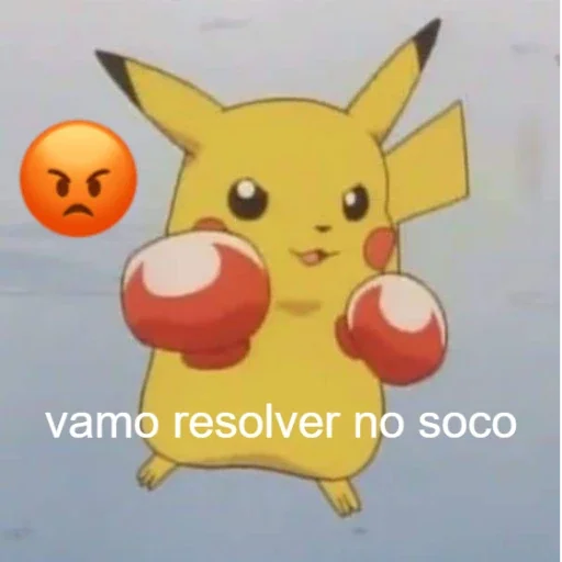 Pikachu com luvas de boxe e expressão determinada, com um emoji de raiva ao lado e o texto 'vamo resolver no soco'