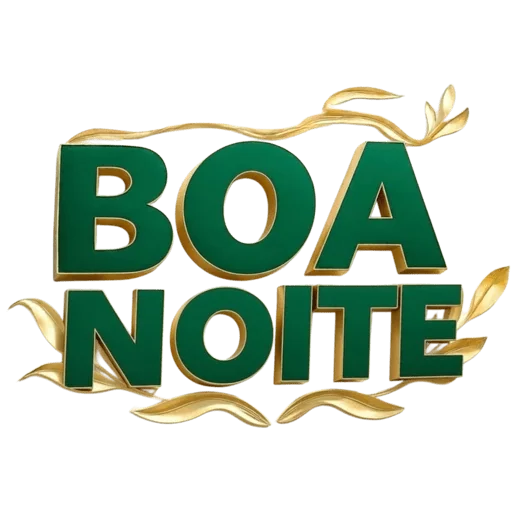 Um sticker com a frase 'BOA NOITE' em letras grandes e verdes com contorno dourado, decorado com folhas douradas.