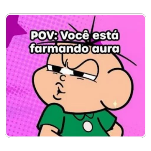 Um menino de cabelo preto e camisa verde, com expressão de desconfiança ou irritação, e o texto 'POV: Você está farmando aura' sobreposto.