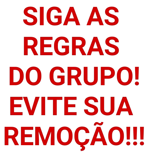 Um texto em vermelho sobre fundo branco que diz 'SIGA AS REGRAS DO GRUPO! EVITE SUA REMOÇÃO!!!'
