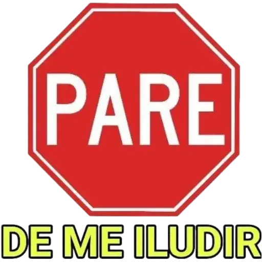 Um sinal de trânsito vermelho com o texto 'PARE' em branco. Abaixo do sinal, há o texto 'DE ME ILUDIR' em amarelo.