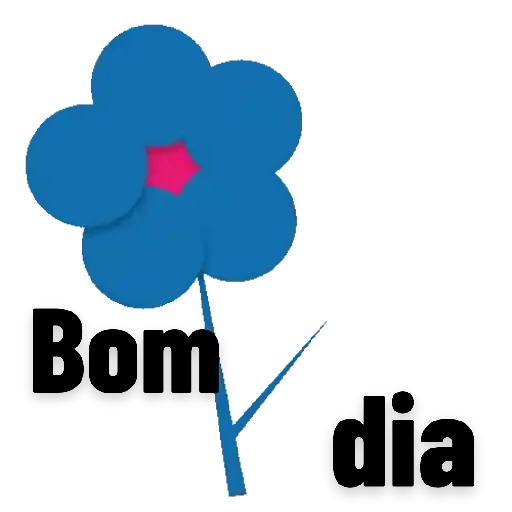 Uma flor azul com um centro rosa e o texto 'Bom dia' em preto.