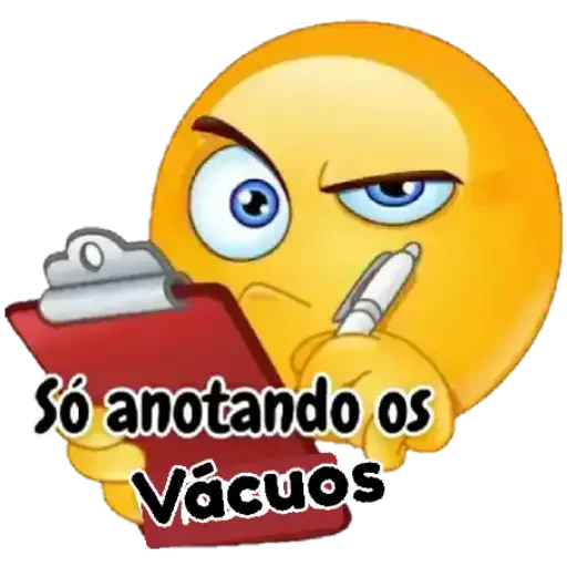 Um emoji amarelo com expressão pensativa, segurando um clipe de papel vermelho e uma caneta, com o texto 'Só anotando os Vazios' sobreposto.
