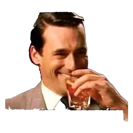 Homem de terno bebendo um líquido de um copo, com expressão facial de desagrado ou nojo.