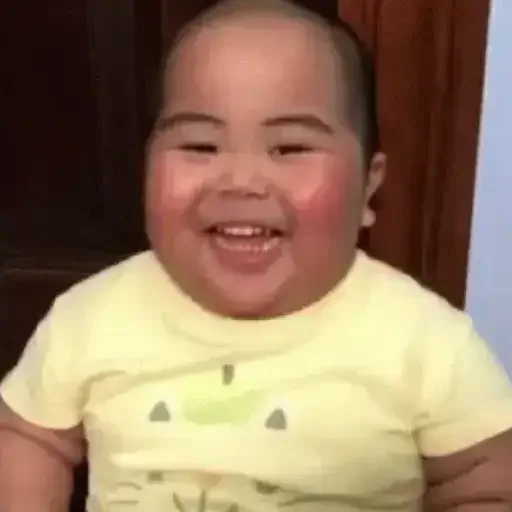 Menino bebê com bochechas rosadas e sorriso largo, usando uma camisa amarela.