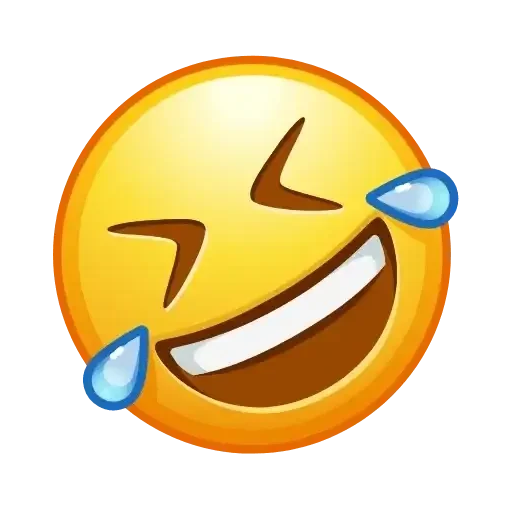 Emoji de rosto amarelo com lágrimas de alegria, olhos fechados e sorriso largo.