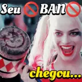 Harley Quinn com um polegar para cima e um olhar malicioso, com o texto 'Prazer...seu pior pesadelo otário' sobreposto.