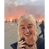 cigarroincendioreacaoUma mulher loira sorri enquanto segura um cigarro, com uma paisagem de incêndio ao fundo. Ela veste uma roupa escura e…Adicionada em 17 de abril de 2026·Misto · Reaçãosorrisofogoloira