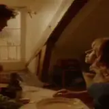 Homem sentado à mesa em um restaurante, vestindo um boné e uma camiseta preta com a palavra 'boss' escrita em azul. Ele…