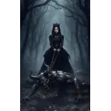 Uma figura vestida com uma longa capa azul com estrelas e um chapéu pontiagudo azul, em pé em uma floresta, com o texto…