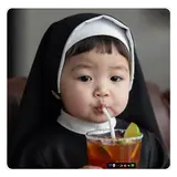 criancasucoUma criança vestida de freira bebendo um suco laranja com um canudo, com uma fatia de limão no copo.Adicionada em 15 de abril de 2026·Misto · Reaçãoengracadomemefreira
