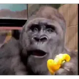 surpresaUm gorila cinza olha para frente com a boca aberta, segurando um objeto amarelo na mão.Adicionada em 13 de abril de 2026·Misto · Reaçãogorilaanimalreacao