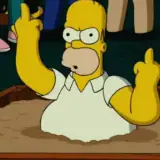 Homer Simpson com expressão de desaprovação, mãos levantadas e texto 'Fodasse vadia' em verde na parte inferior.