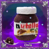 chocolateengracadoUma jarra de Nutella feita de crochê, com uma colher de chocolate ao lado, em um fundo roxo com estrelas e um quadro de…Adicionada em 20 de abril de 2026·Ilustração · Complementocrochenutellacomida