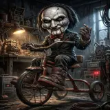 oficinasiniestroengracadoUm personagem com uma cabeça grande e deformada, parecida com um palhaço ou um boneco de terror, está sentado em uma…Adicionada em 19 de abril de 2026·Ilustração · Reaçãoterrorpalhacobicicleta