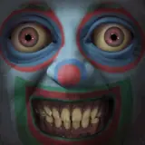 Um clown feliz com balões coloridos, vestindo um chapéu amarelo, camisa amarela com botões azuis e calças listradas…