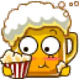 Winnie Pooh pixelado com expressão feliz, usando uma camisa vermelha, com notas musicais coloridas ao redor.