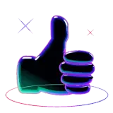 Mão com polegar para cima saindo de um buraco, com expressão de aprovação ou concordância.