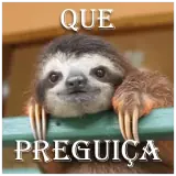 Um bicho-preguiça com expressão neutra, apoiado em uma barra verde, com as unhas longas. A imagem traz o texto 'QUE…