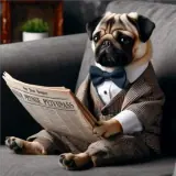 leiturajornalUm pug vestido com um terno marrom e gravata azul lê um jornal sentado no sofá.Adicionada em 13 de abril de 2026·3D · Complementocachorropuganimal