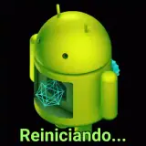 Um robô verde do Android com uma expressão neutra e um círculo geométrico dentro de seu corpo. Abaixo dele, está…