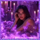reacaoluxoMulher de cabelos pretos e roupa brilhante, com velas acesas ao fundo, cercada por uma aura roxa e nebulosa.Adicionada em 17 de abril de 2026·Ilustração · Reaçãomulherroxavelas