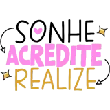Sonhe, Acredite, Realize. Texto colorido com coração e estrelas.