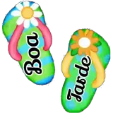 terraDois chinelos de borracha coloridos com flores, um com a palavra 'Boa' e o outro com 'Tarde', sobre um fundo verde e…Adicionada em 19 de abril de 2026·Ilustração · Saudaçãosaudacaoveraochinelos