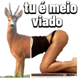 viadobrasileiroUm veado com chifres ao lado de uma mulher de topless fazendo uma pose de yoga, com o texto 'tu é meio viado' em cima.Adicionada em 17 de abril de 2026·Misto · Reaçãomemeveadoyoga